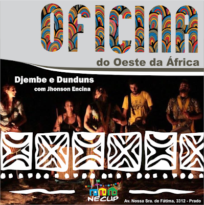 Todas as quintas feiras tem Oficina do Oeste da África- Djembe e Dunduns com o mestre Jhonson Encina no Centro Cultural NECUP - Núcleo de Estudos de Cultura Popular.